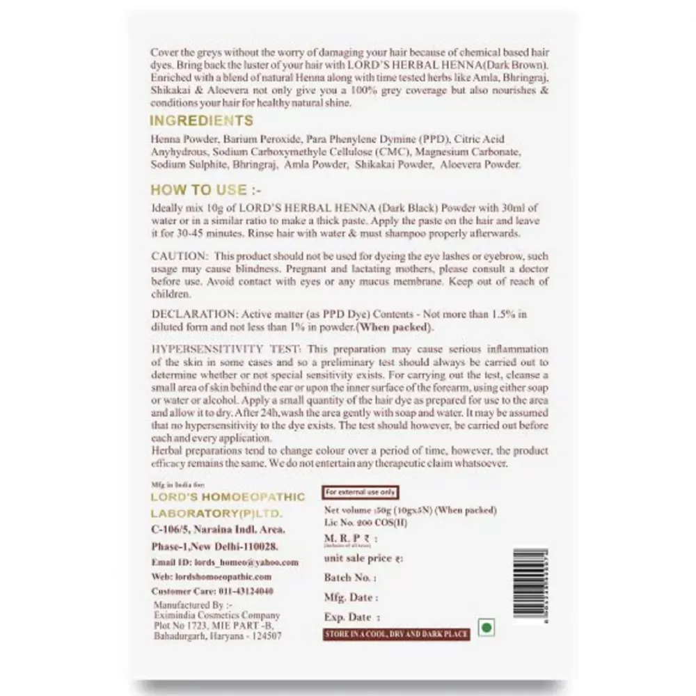 Herbal Henna Dark Brown Hair Colour 50g, Lords